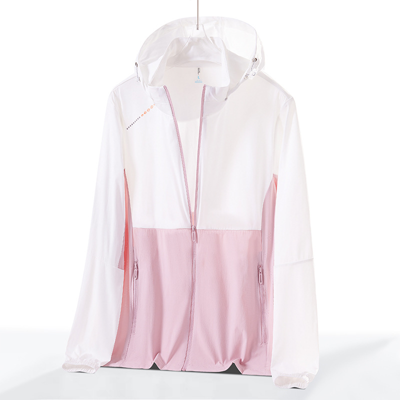2025年夏の新型日焼け止め服の通気性紫外線防止氷糸の色合わせ日焼け止め服の男女モデルUPF50