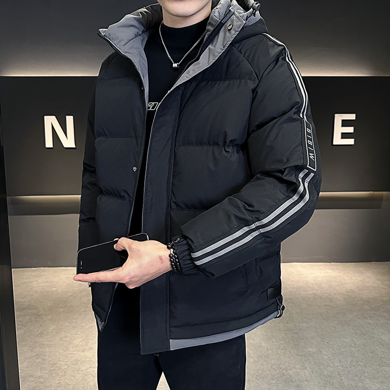 綿の服の男性の帽子のコートのストライプの保温が厚くて、防寒の香港風の百合の綿の上着の冬のコートの綿服の男性のファッション