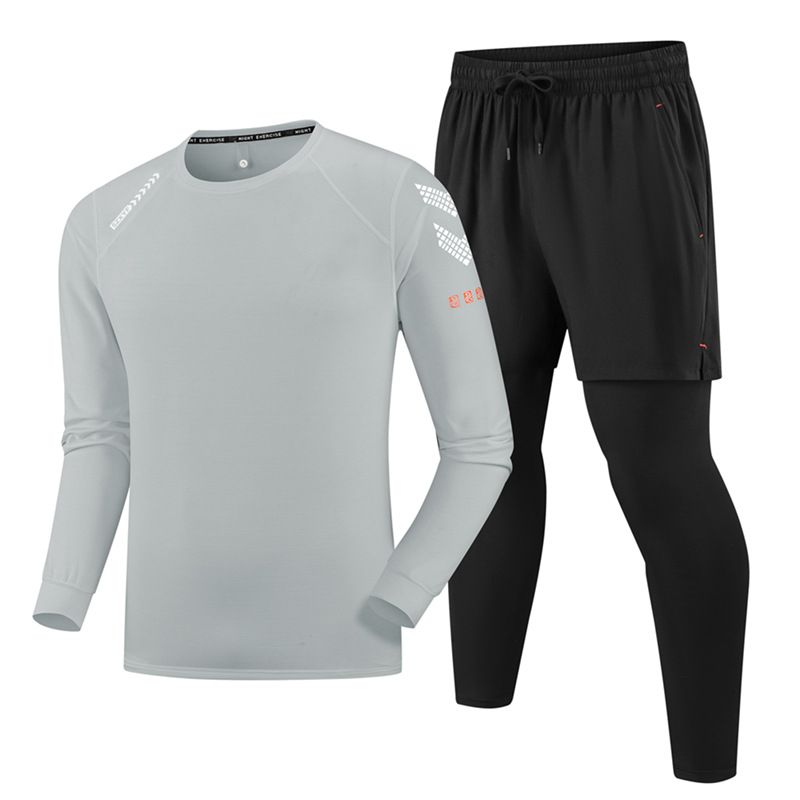 運動フィットネスセット男性2024秋冬男性韓国版青年男性立襟屋外ランニングウェア2着