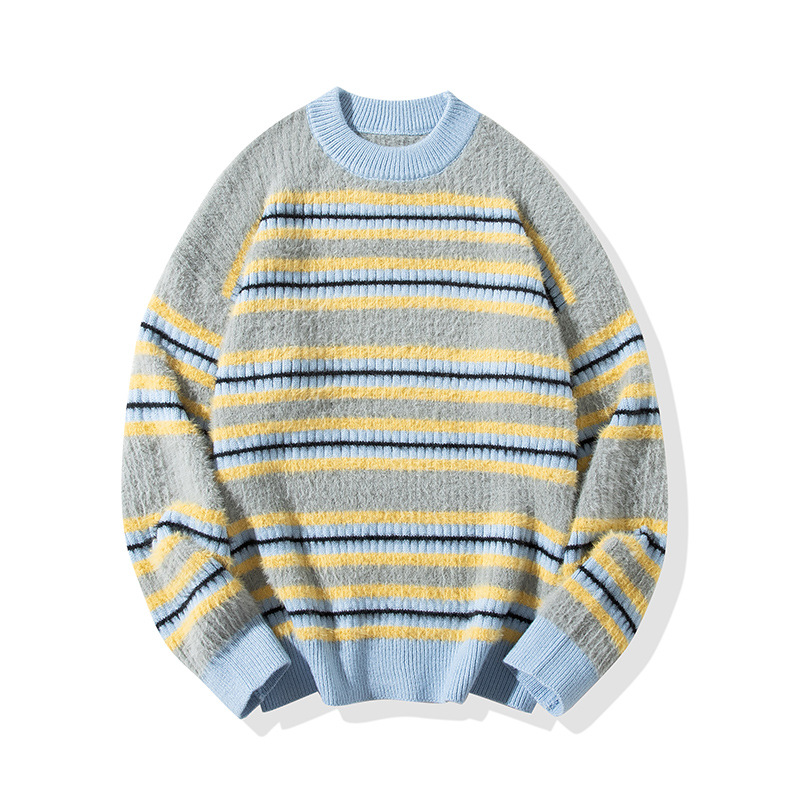 セーターの男性は冬の新型男性の韓国版カジュアル青年丸首のストライプの小さい清新な上着のニットのファッションを厚くします。