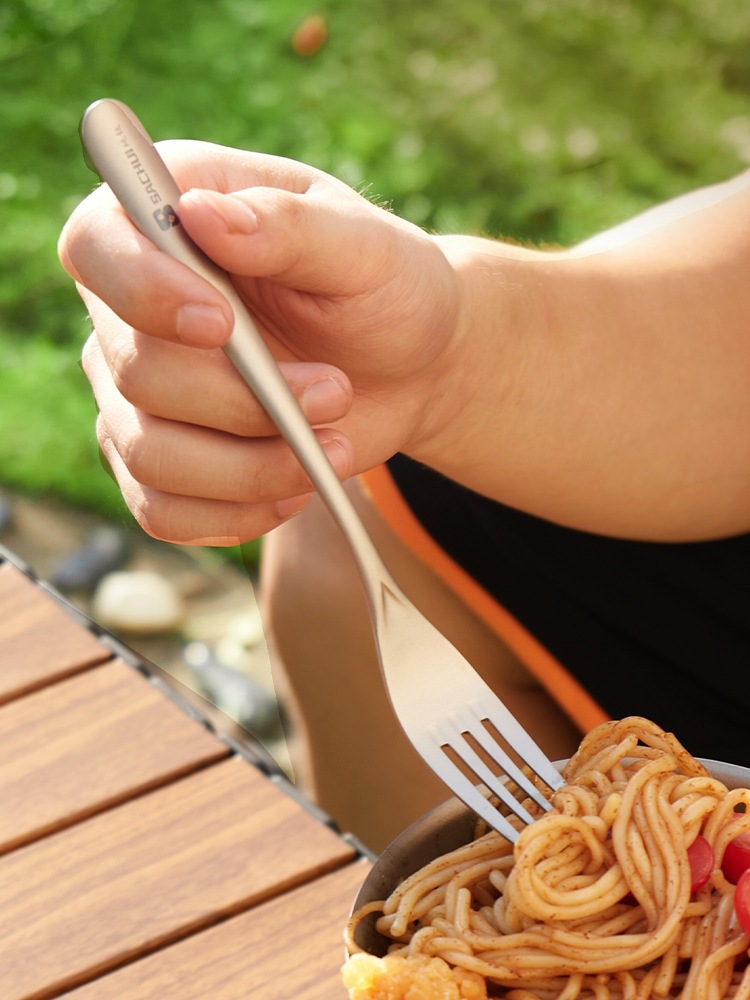 純チタンスプーンフォーク箸セットアウトドアポータブルチタン食器収納ボックスキャンプチタン金属箸フォークスプーン三新品