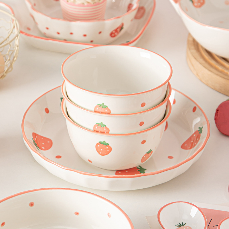 イチゴの陶磁器の碗の皿のセットの家庭用の茶碗の双耳のスープの碗の食器の食器の食器の食器の食器の皿の1、2人は食器を食べます。