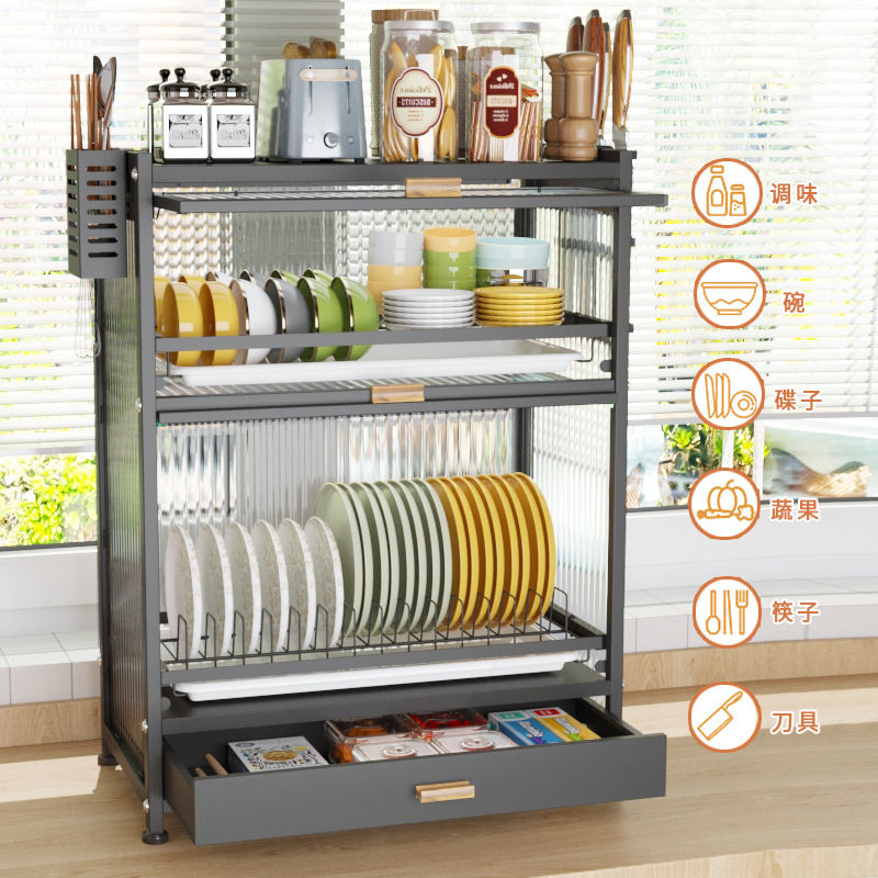 キッチン食器棚収納ケース蓋付き食器棚カウンター皿収納棚家庭用二重食器皿水切り棚