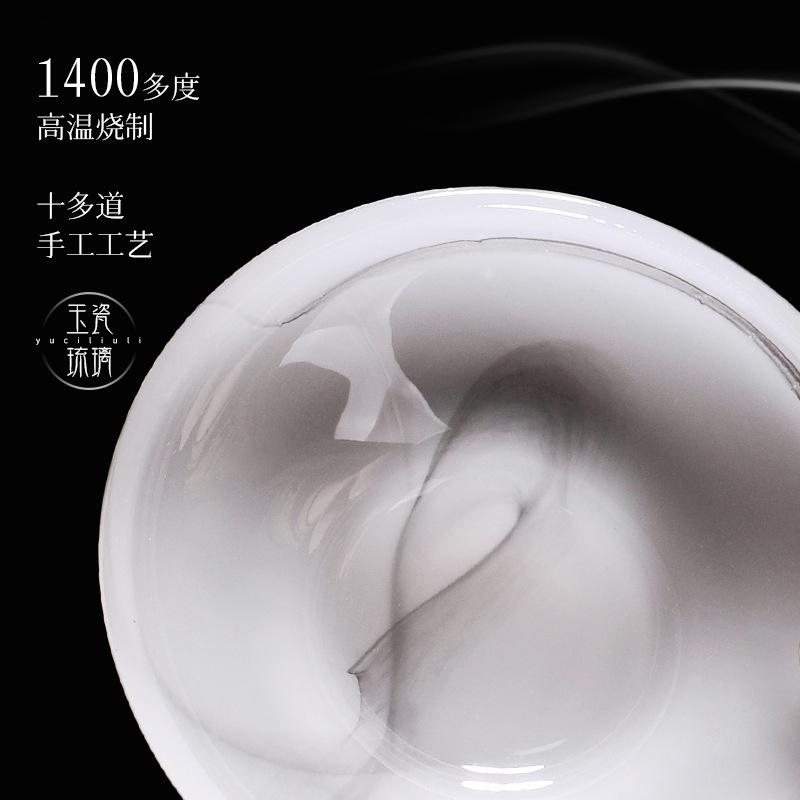 卸売り瑠璃茶器セット白玉茶杯家庭用オフィスプレゼント玉磁器ティーポットガラス工夫蓋碗