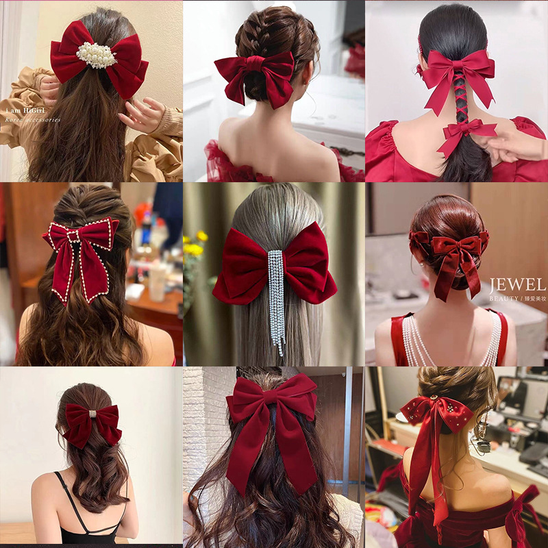 民族風の花嫁の結婚の頭飾りのワインの赤いフランネルのヘアピンの中国式の結婚式の大きい蝶結びの乾杯のドレスの装飾