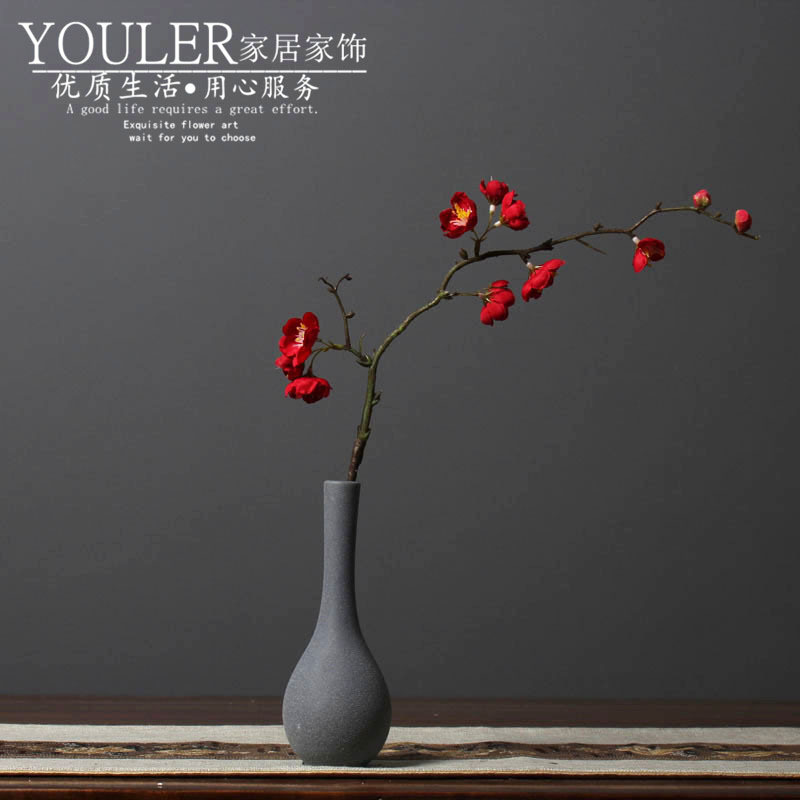 梅の梅の梅の花の造花の絹の花の中国式の禅の意の客間の家庭の生け花は陶磁器の花瓶の花器を飾ります。