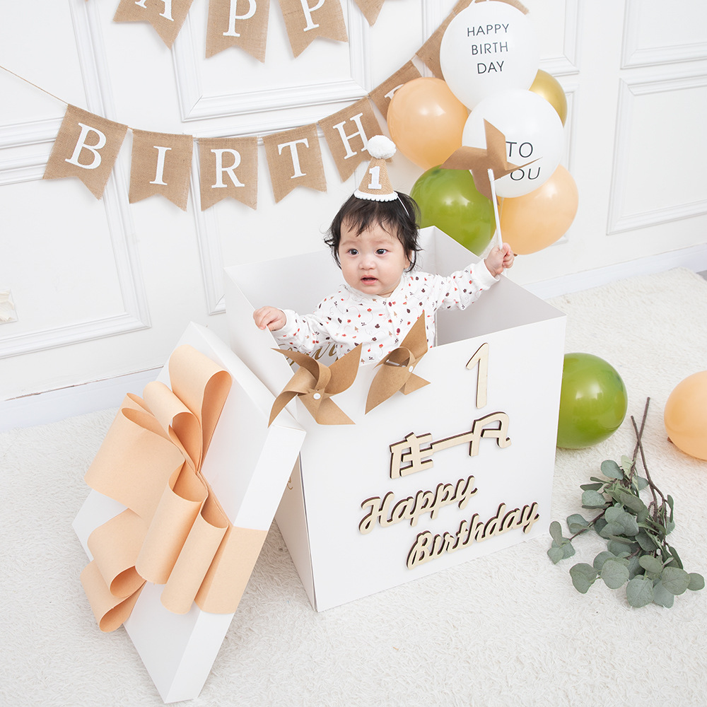 Ins風紅書宝宝一歳誕生日プレゼント箱風船背景壁装飾パーティー