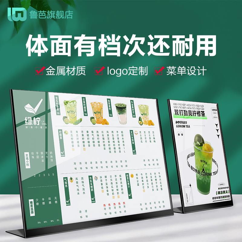 A3金属台カードミルクティー店メニュー展示ブランド飲料メニューデザインステンレステーブルブランド注文ブランド漢