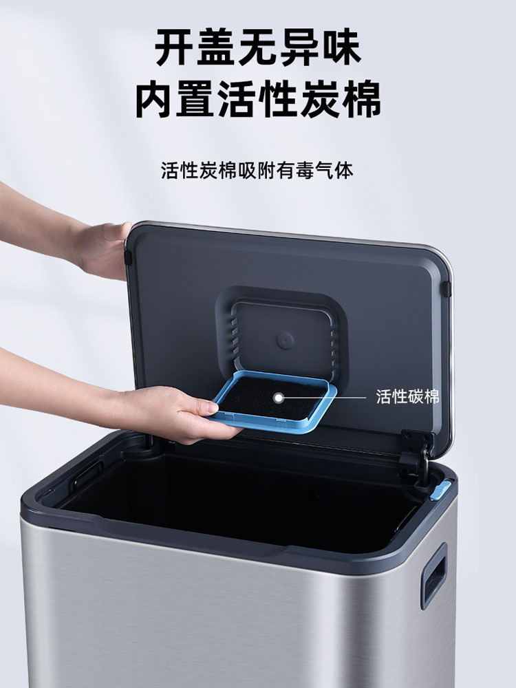 大容量のステンレス製の足踏み式のゴミ箱は中の桶を持っています。
