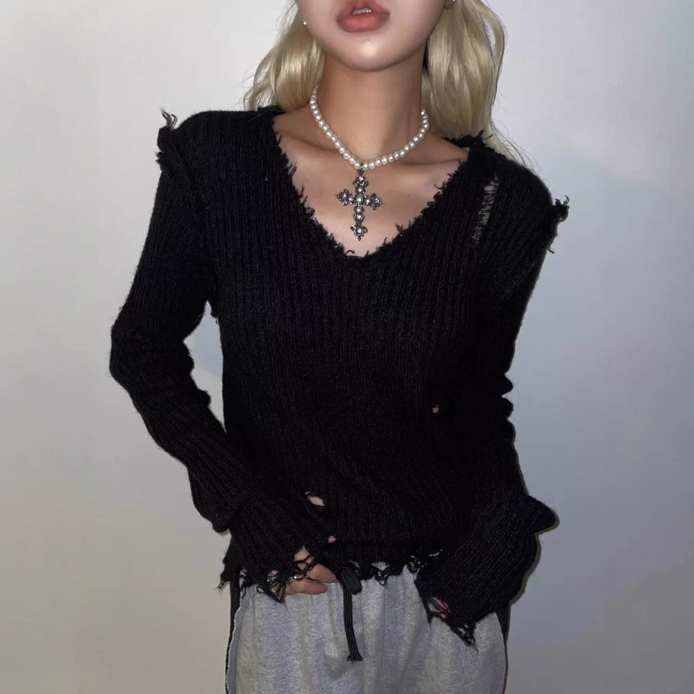 速売通欧米対外貿易女装2023新気質vネック手作業で長袖を磨いて痩せたニットウェアを見せた