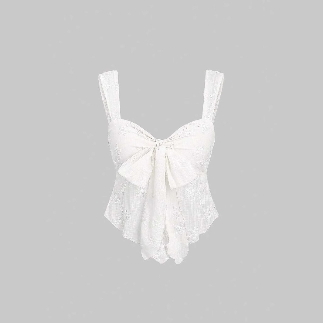 ヨーロッパとアメリカンスタイルのセクシーなホットガールレースチューブトップリボン甘い無地ツイストストラップTシャツ