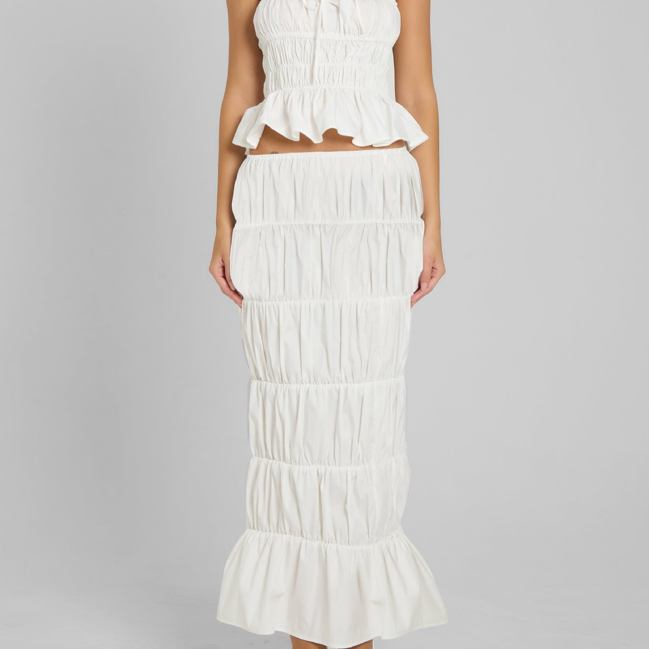 2025年のファッション的なセクシーで痩せた純色のベストの上着のしわの包みの尻は腰のケーキのスカートの2つのセットを収めます。