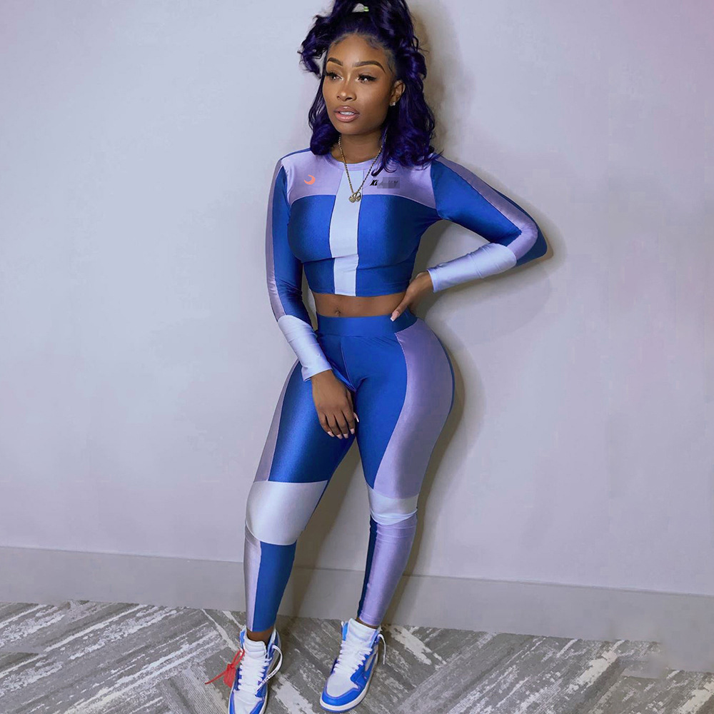 欧米風2020クロスボーダー外国貿易速売通春新作婦人服プリント修身長袖スポーツスーツ