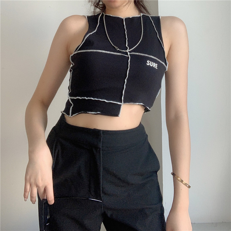 速売通2020夏の新型女装純色u襟袖なし上着胸を巻いた後、首を掛けたベスト