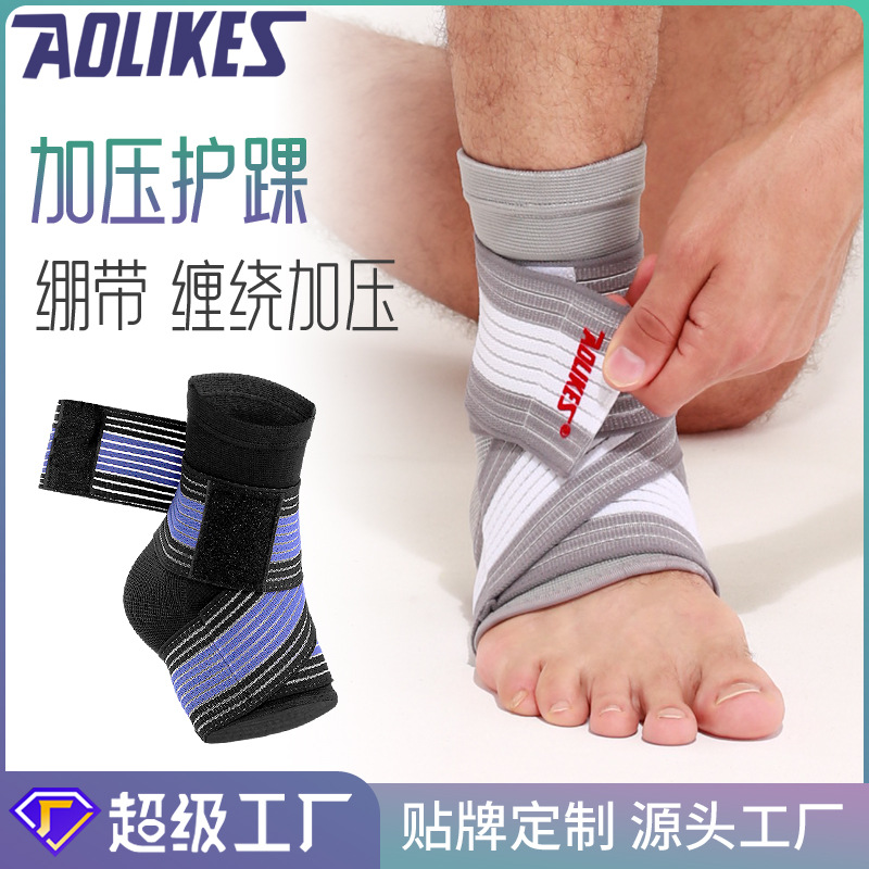 メーカーのランニングスポーツ加圧足首保護包帯を巻いて足首を保護します。