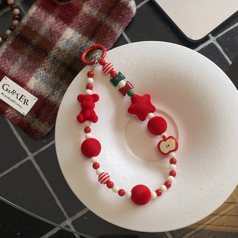 自作秋冬新年フェルトビーズクリスマスツリー携帯チェーンかわいいktぬいぐるみ熊包ペンダントキーホルダー