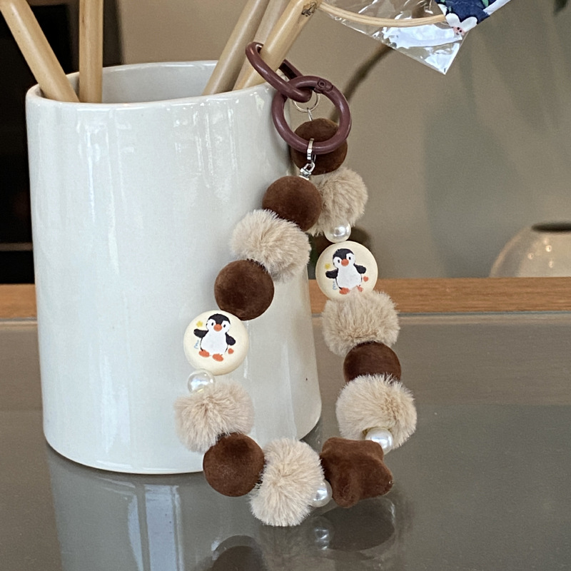 秋冬美ラード毛玉ストラップアメリカレトロかわいいペンギンカレー色の毛の毛の掛け金