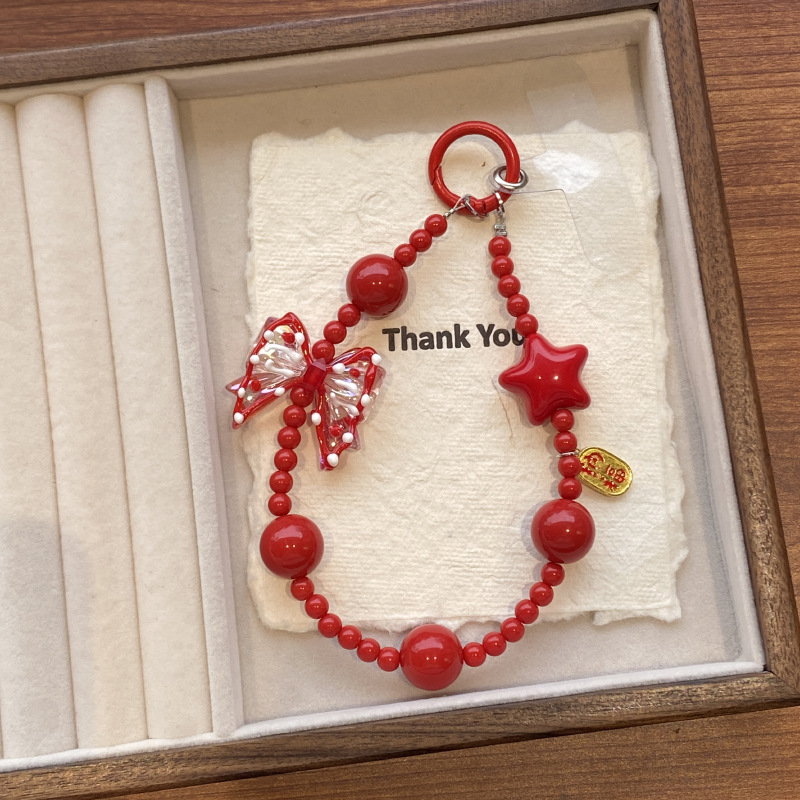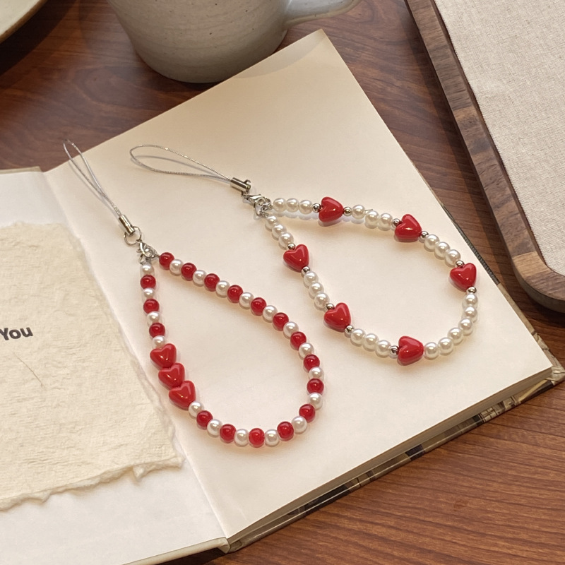 日韓ins真珠赤ビーズ愛携帯チェーンdiy紛失防止キーホルダーリストバンドccd愛心バッグペンダント