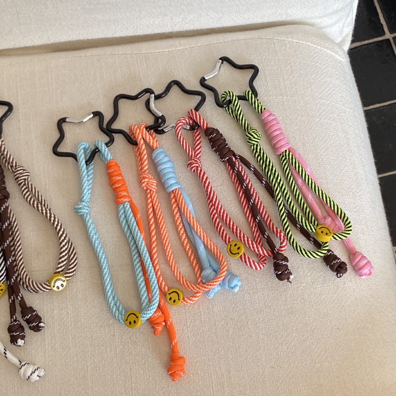 韓insカラードーパミン笑顔編み縄ボタン小衆シンプル登山縄ストラップシンプル掛けF