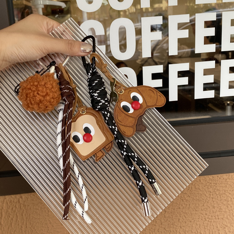 大衆レトロ自家製創意大目牛角包ストラップ秋冬毛玉赤鼻トーストパンキーホルダー