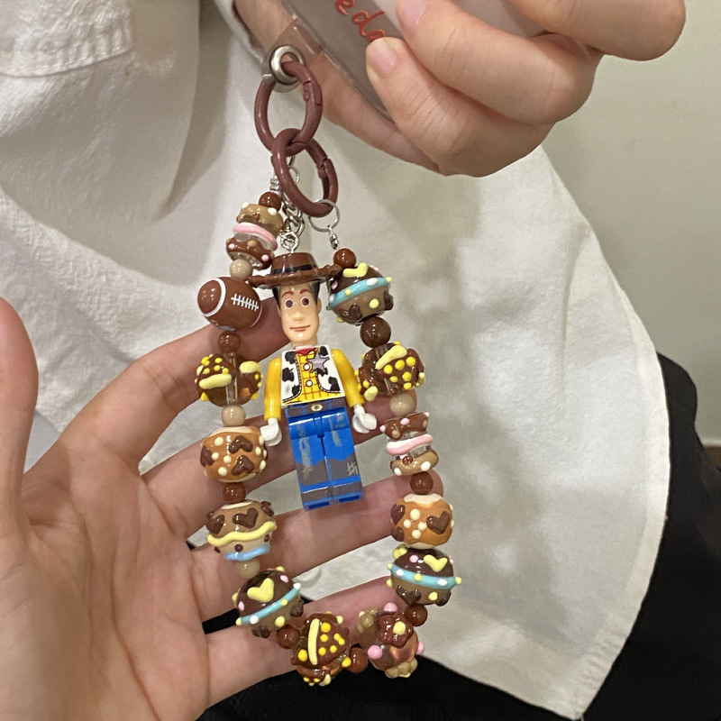 小衆デザイン手描きビーズ漫画コーヒーラグビー携帯チェーン積み木キーホルダーccdカメラバッグペンダント