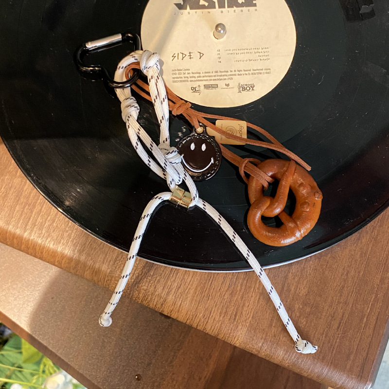 Iu風クリエイティブレトロアルカリ水パン笑顔包ストラップins小衆編みチョコレートキーホルダーペンダント