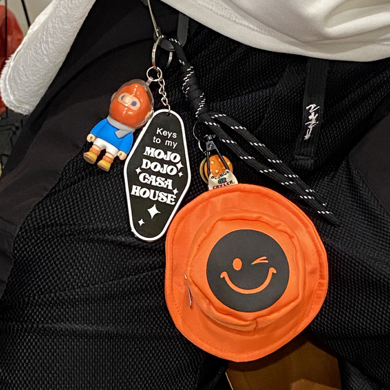 ボブ潮クール少年立体公仔キーホルダーレトロ漁師帽小銭入れストラップ