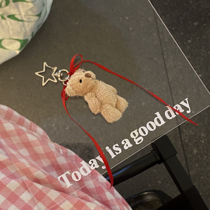 星呆萌かわいいぬいぐるみの熊の子供の鍵は赤い蝶結びのリボンの関節の熊の包みのペンダントを掛けます。