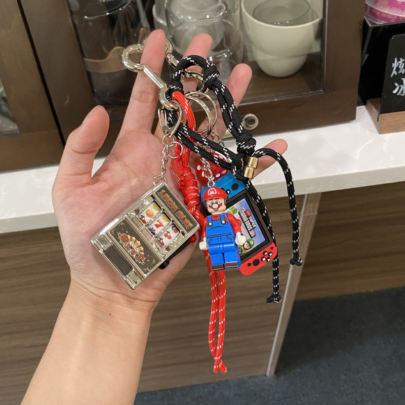 極繁の漫画のマリオのゲーム機の大金持ちはアイデアのサイコロの積み木の骨のキーホルダーを包みます。