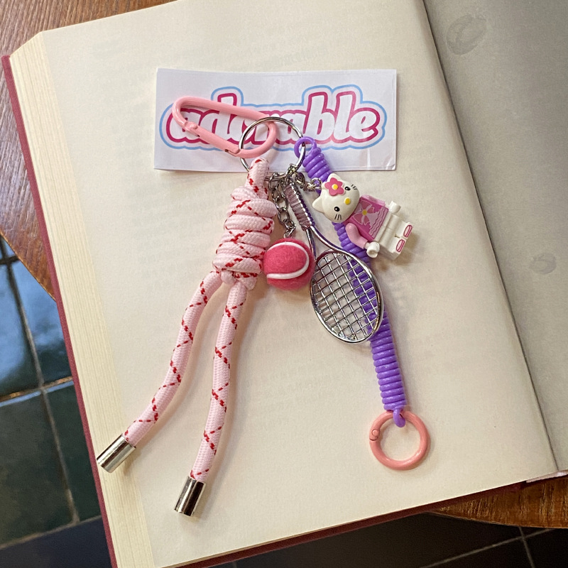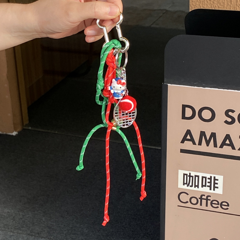 韓insかわいい衝突色ロープ赤いテニスKtキーホルダー小衆編みスポーツ風骨包ストラップストラップ