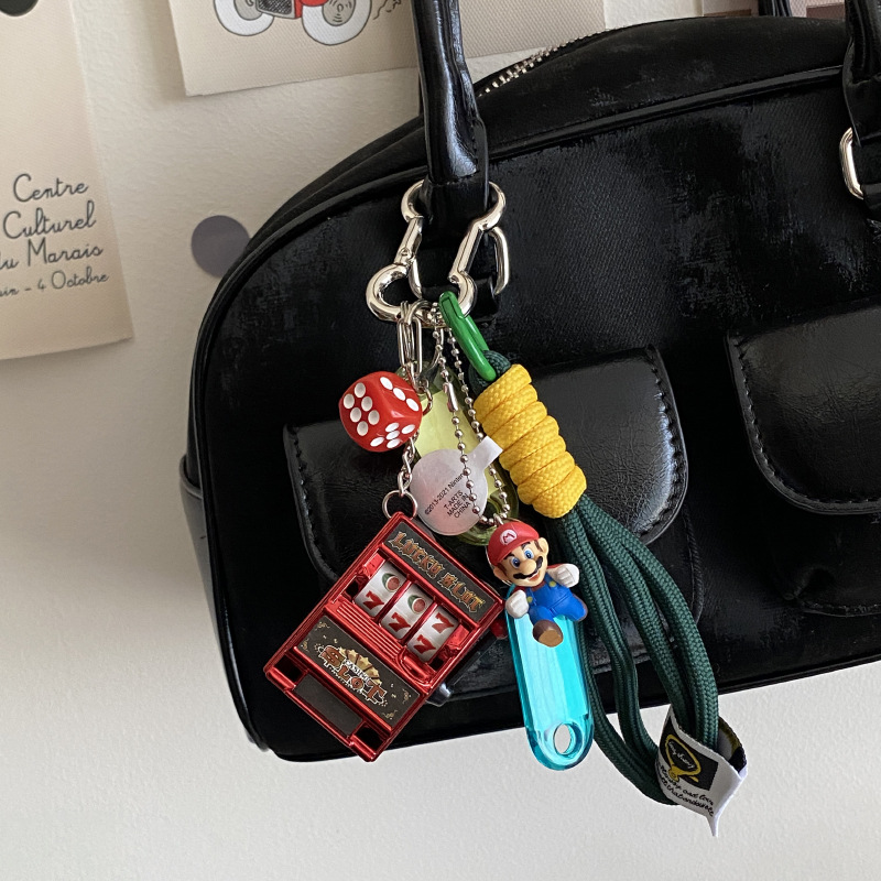非常に多くのレトロな創意子供時代のマリオバッグストラップアニメの大金持ちサイコロの骨のキーホルダープレゼント