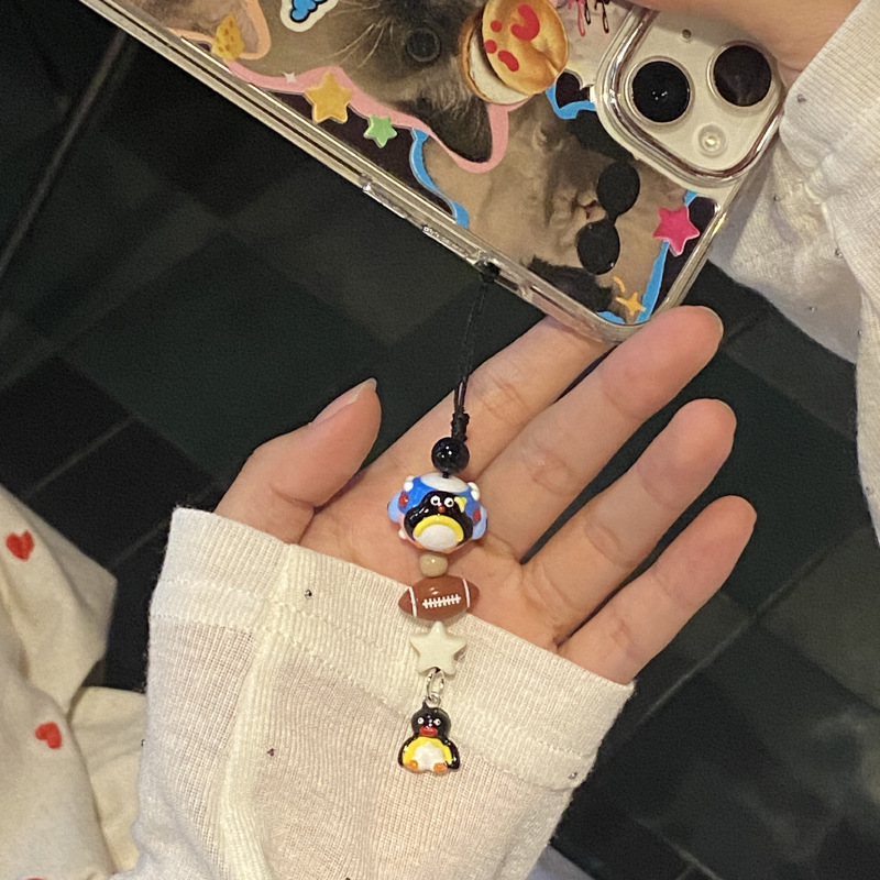 Insかわいい手描きペンギン人形ビーズ携帯チェーン面白いレトロなラグビー漫画ccdストラップキーチェーン