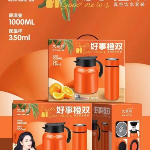 Effie Bear Good Things オレンジ ダブル真空断熱ドリンクカップとポットセット 1000ml バリスティックティーポット 高価値 大容量