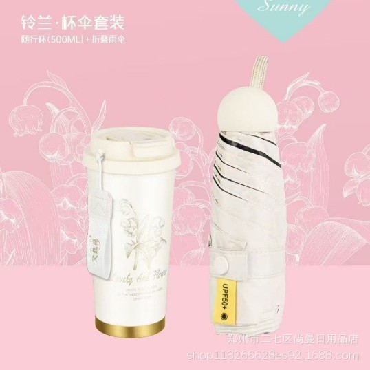 Effie Bear Lily of the Valley. カップと傘セット ダブルドリンクコーヒーカップ 500ml + 折りたたみ傘 ビジネスギフト 高価値