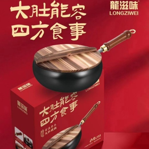 古代の大きなお腹鍋、張丘ノンスティック鉄鍋、小さな中華鍋、炒め物とスープ、24CMの小さな鉄鍋、手鍛造シチューポット