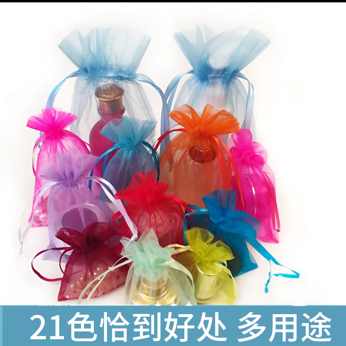 100個/バッグ純色欧根紗ギフト包装袋高級感喜糖喜卵袋束口化粧品ロープ袋