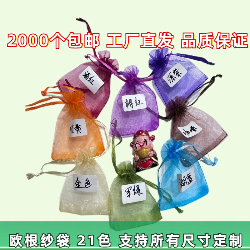 百個分包欧根紗束ポケット源卸売り純色ネット糸引きアクセサリー包装袋収納袋特恵