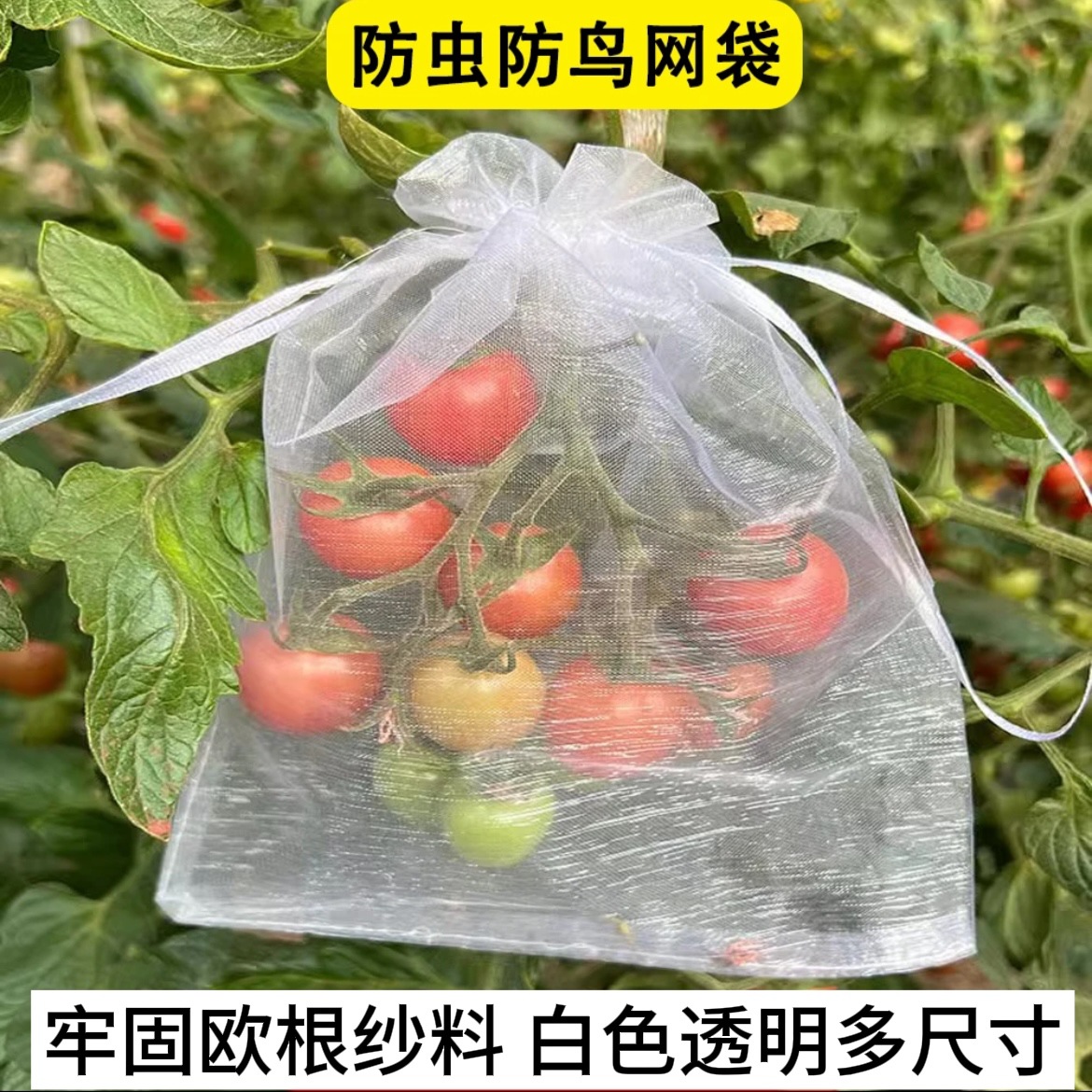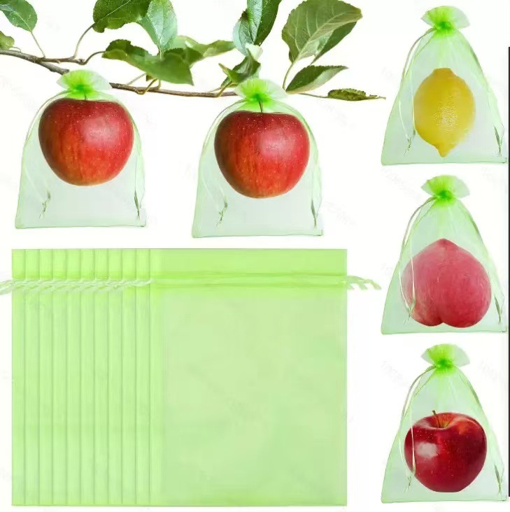 果物のブドウのいちじくの袋の防虫のイチゴの防鳥のネットの袋の通気性の循環はダブルロープの欧根の紗の袋を使います。