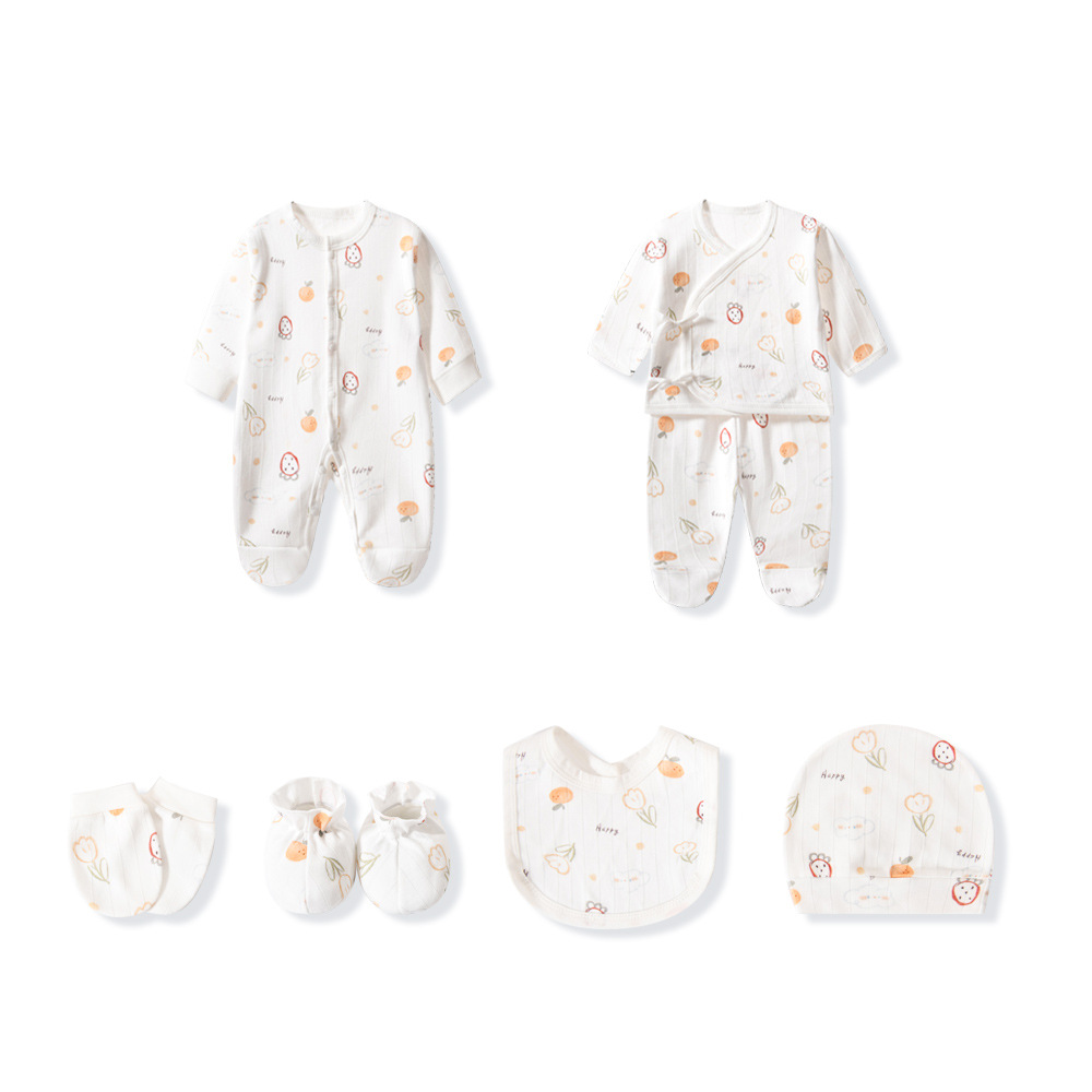 幼児・幼児用春秋ベビー服7点セット、帽子、靴下、よだれタオルセット、カテゴリーA標準7点セット