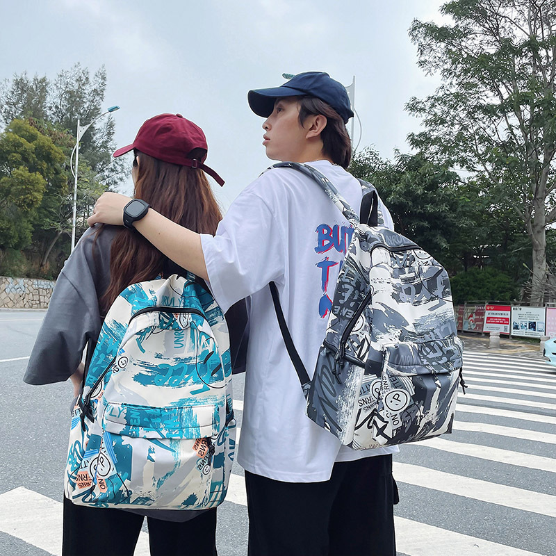 大容量リュックサック韓国版中学生中学生リュックサック男性ファッション新聞落書きカバン女性軽量減圧