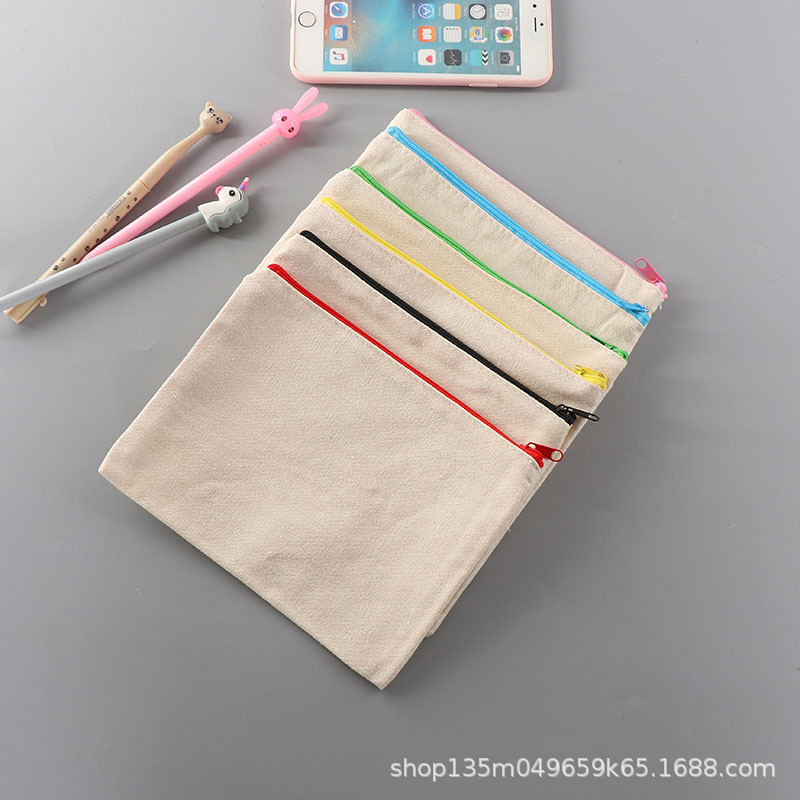 空白のキャンバスのファスナーの袋の学生の筆の袋の化粧袋はロゴの手を印刷して小銭を持って袋のメーカーの熱い販売品を収納します。