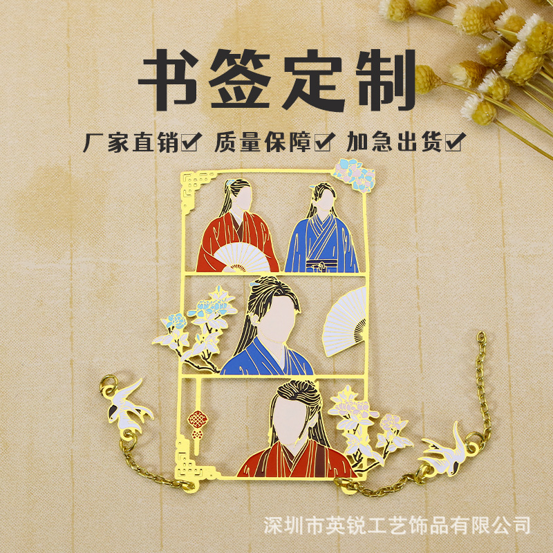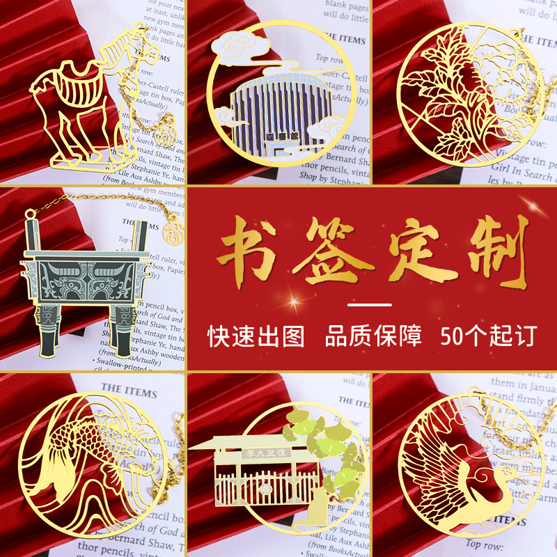しおり制作金属透かし彫り真鍮しおり創意logo古典中国風文創礼品陳情令彫刻