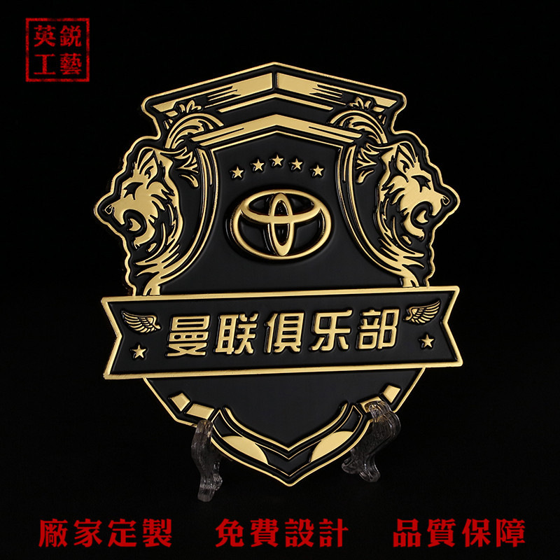 金属の車の標識はクラブの立体の中でネットの標識を注文して漆の尾の標識を焼きます。