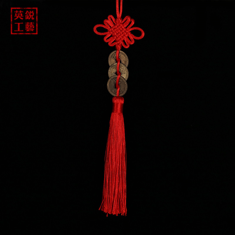 メーカーは金属風水銅銭黄銅の地色の糸を作って、天元四方の銅貨を掛けて制作します。