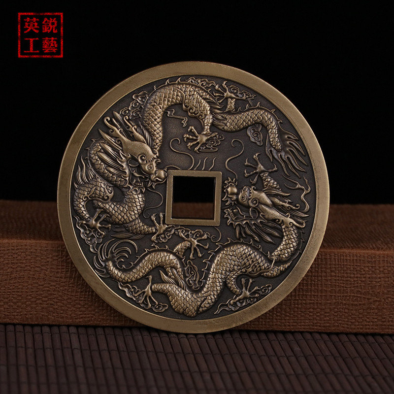 現物の銅銭の大きい置物の製作招財進宝は古い亜鉛合金の立体の竜鳳の銅貨の復古の銅貨をまねます。