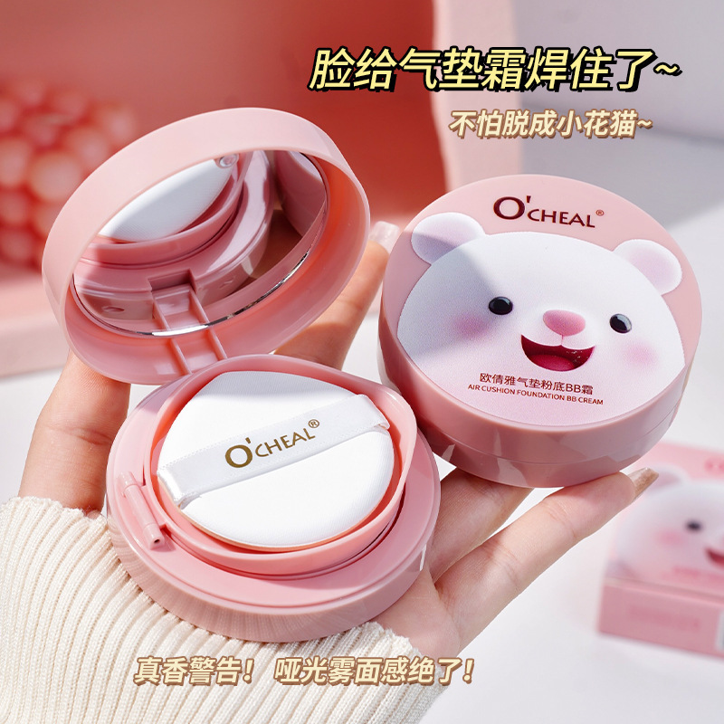 Ouqianya エアクッションファンデーション BB クリーム、保湿、自然、軽くて長持ち、マット、オイルコントロール、明るく、メイク落ちしない BB クリーム