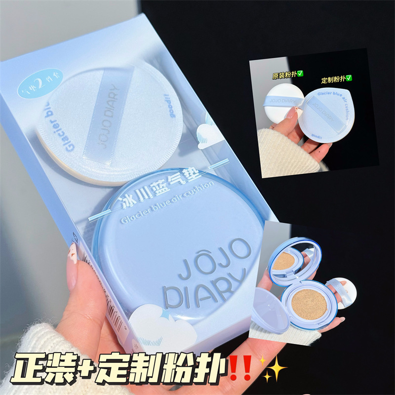 Jiujiu Diary Glacier Blue エアクッション、メイク落ちしない、防水性と耐汗性、長時間保湿、オイルコントロール、軽くてフィット感のあるカラーエアクッション