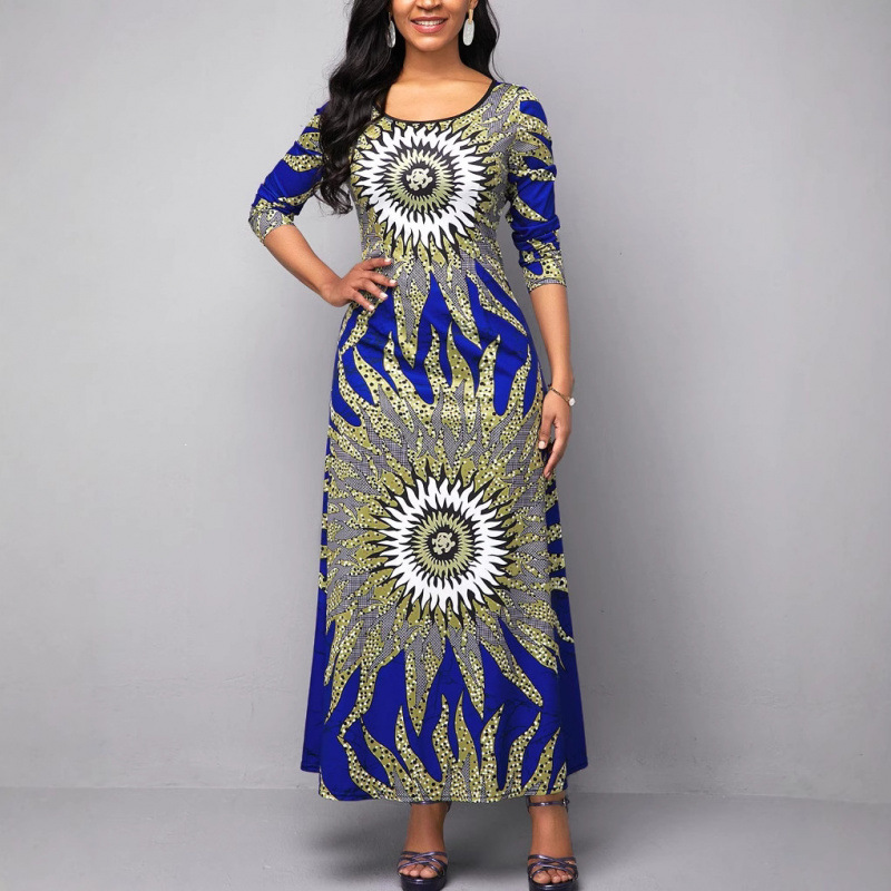 2025 新しいヨーロッパとアメリカのクロスボーダー婦人服新しいスタイル AliExpress トレンド Temu ラウンドネック長袖ロングドレス