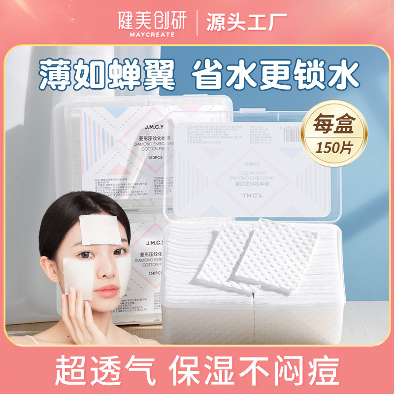 健美創研のひし形のエンボス化粧綿は化粧を落として顔の水を補います。