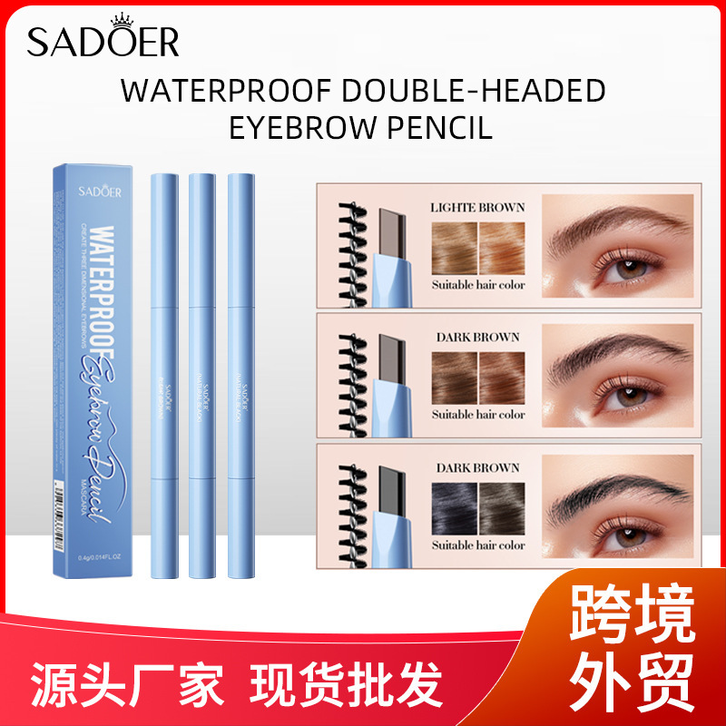 完全英語 SADOER 防水アイブロウペンシル双頭防水非汚れ防止汗防止アイブロウブラシペンメイクアップ卸売外国貿易クロスボーダー